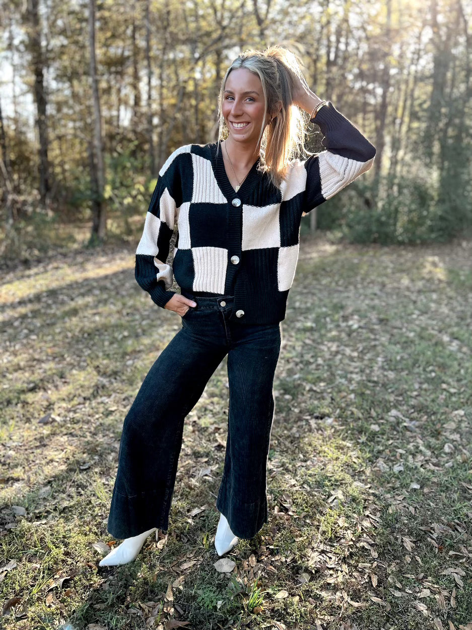 This black and white front button cardi is a stylish and versatile addition to your wardrobe. With its classic button-up design, you can easily dress it up or down for any occasion. Made with high-quality materials, it offers both comfort and durability.