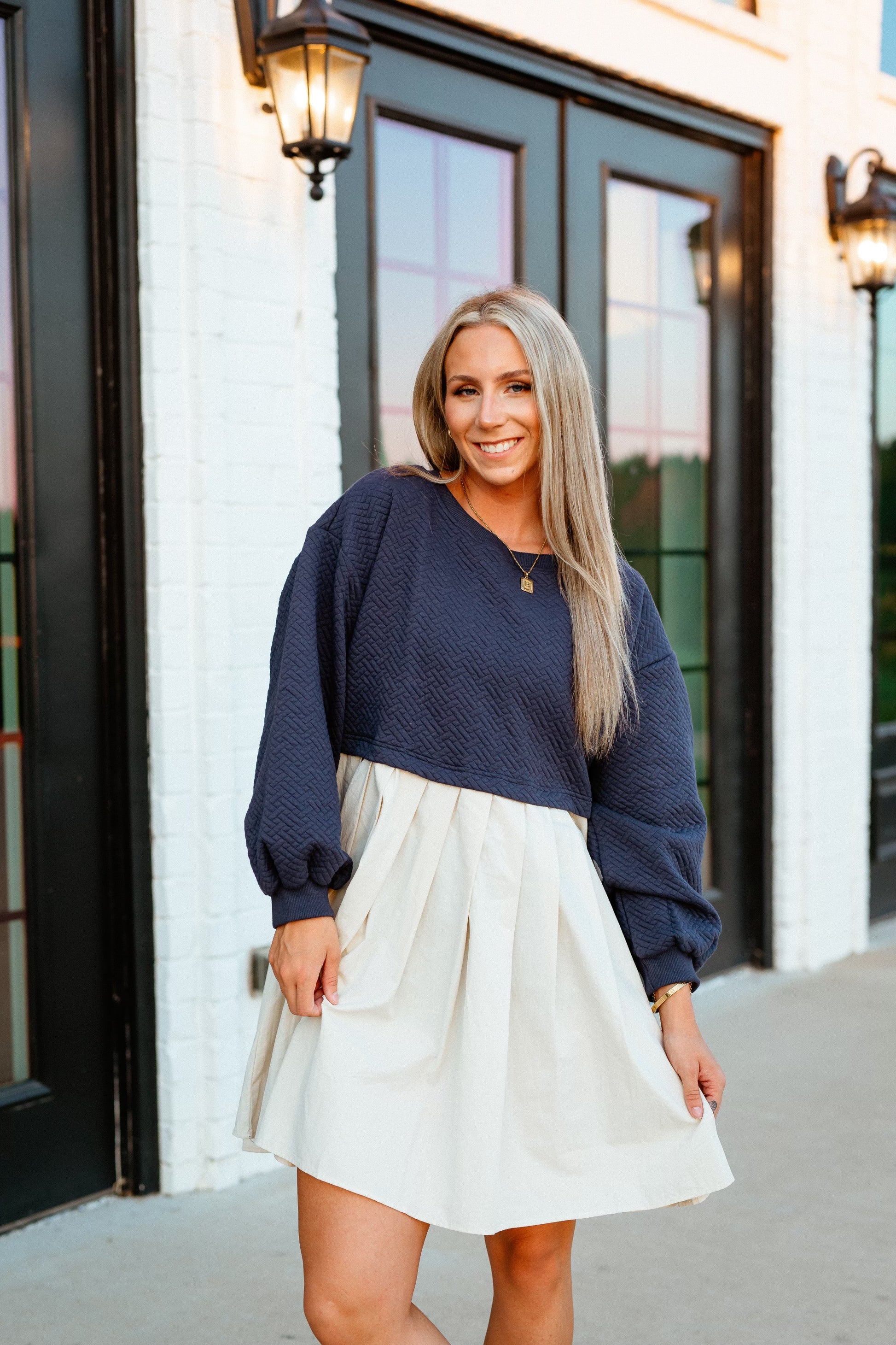 Stay cozy and chic in the Ava Pleated Babydoll Dress. Made with long sleeve quilted knit and a flattering pleated design, this dress is perfect for any occasion. Stay stylish and comfortable all day long with this must-have piece.